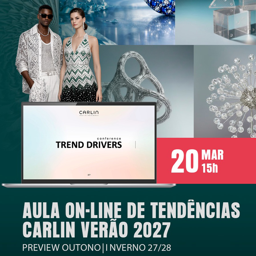 Participe da Aula de Tendências CARLIN Verão 2027, um webinário exclusivo e ao vivo, apresentado por Blanca Llihanne, e descubra as macrotendências que vão orientar decisões criativas e estratégicas nos próximos anos.